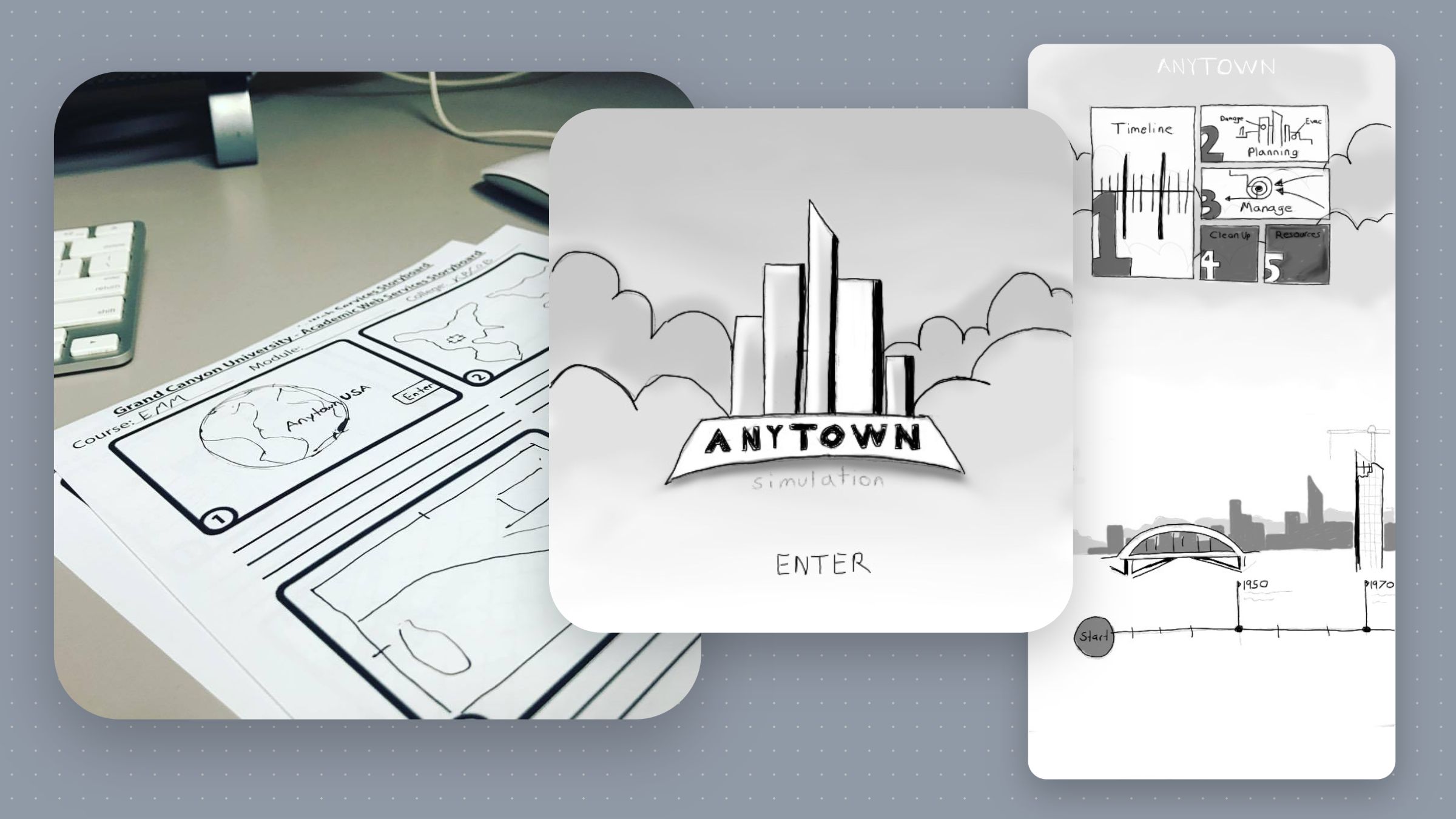 In designing Anytown, I initially envisioned a comprehensive learning platform for disaster management courses. However, the scope of the project was reduced. In refining the project, I scaled back the approach to honor one of the fundamental elements of crisis management: the history of previous crises. This adjustment allowed me to tailor the platform effectively, enabling students to explore past disasters and test their knowledge interactively.