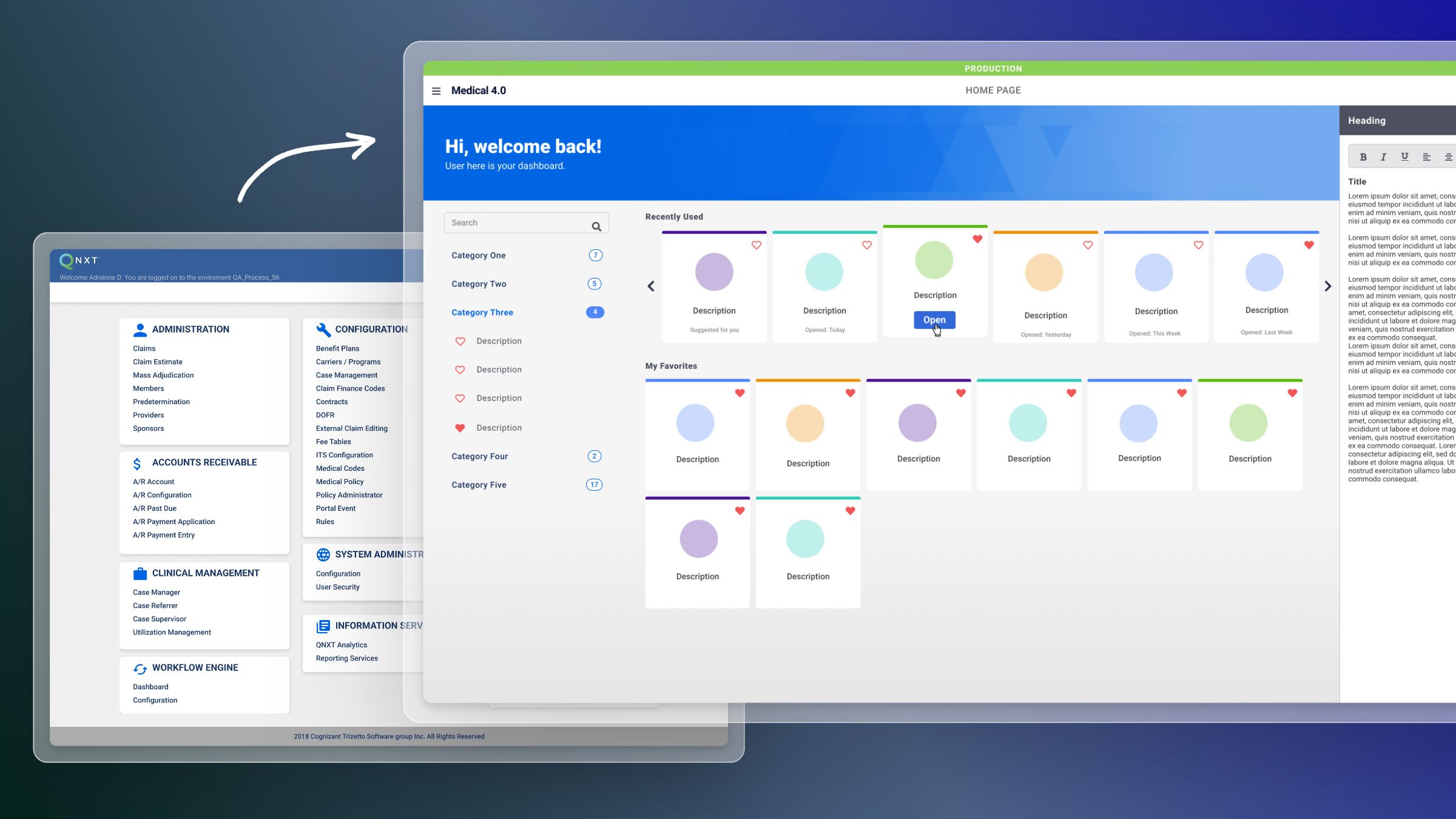 My role at Cognizant involved designing a large-scale design system with over 100 flexible components to streamline product development. I leveraged A/B testing, job shadowing, and usability testing to gather valuable user feedback. In total, I created 200+ wireframes for A/B and usability testing sessions with stakeholders.